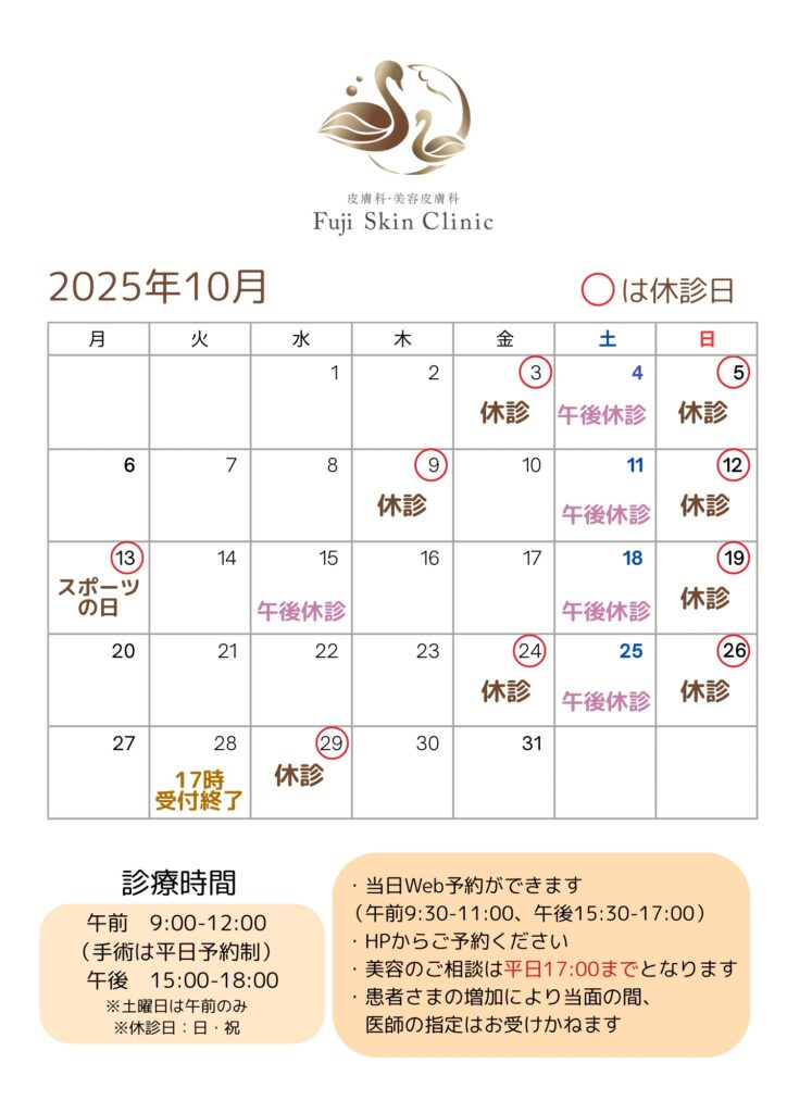 ※6か月以上施術がない場合、お肌の状態を確認させていただきたいので美容初診の診察をお願いいたします。